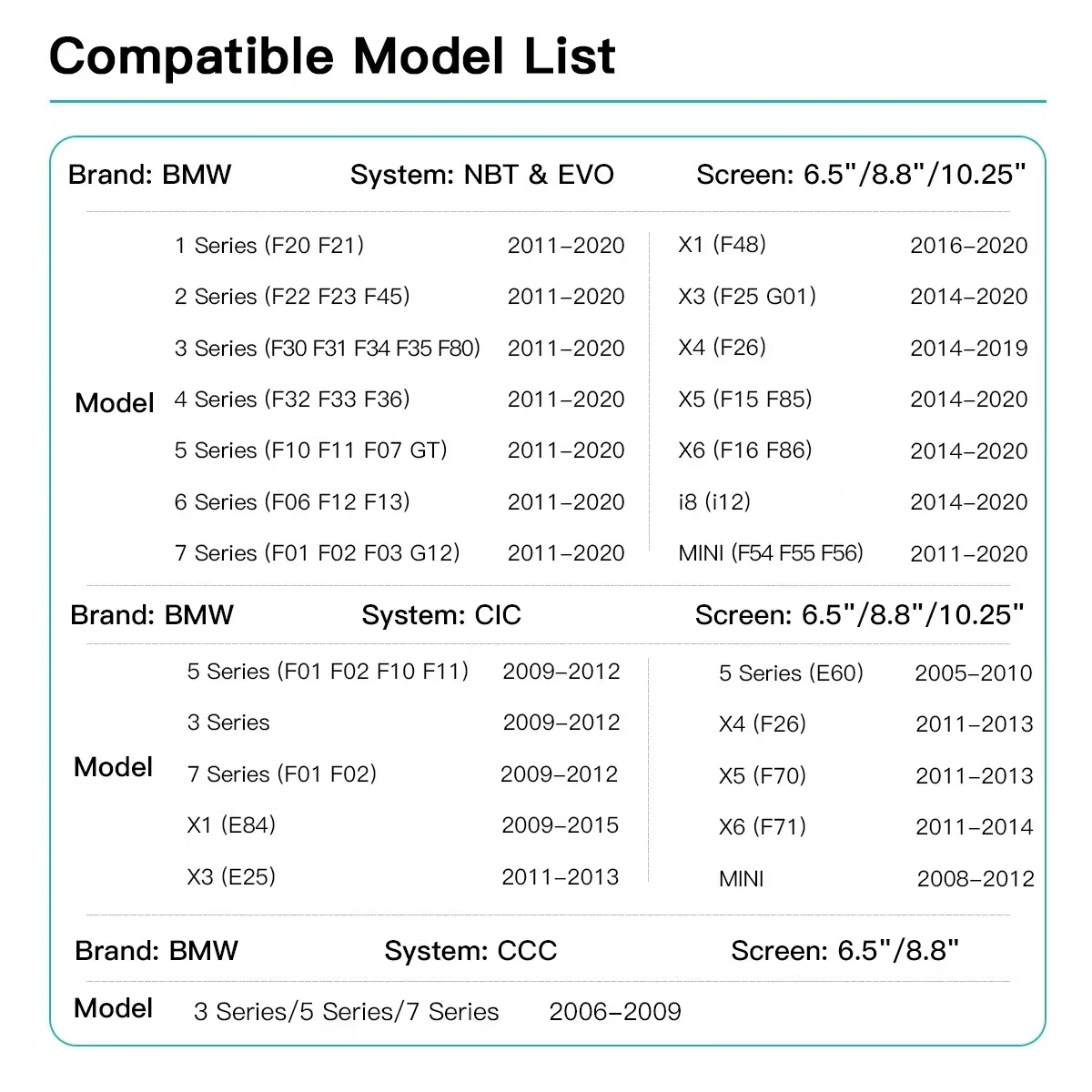 Attention: this decoder box have three kind , CIC, NBT and EVO. Before order ,pls show us the year of the car and system to choose correct model.